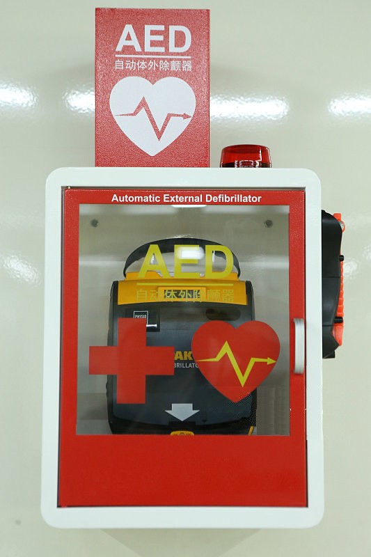 我国每年因心脏骤停死亡的人数超过 50 万,每 60 s 就会有一条生命因此离去。4 min 是心脏骤停发生后的黄金救助时间。在生死一线的黄金时刻,自动体外除颤器(Automated external defibrillator,缩写 AED,图 9–72)可以担负起挽救生命的职责。自动体外除颤器智能易操作,能完成心脏电击除颤,为患者争取更多生命的机会。自动体外除颤器以 100 kW 的电功率用 20 A 的电流通过胸腔,在约 2 ms 的时间内传输最多 200 J 的电能。在人流密集的公共场所,如何才能找到自动体外除颤器?