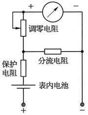 命题意图:通过简单电路,了解指针式多用表测电阻原理。
