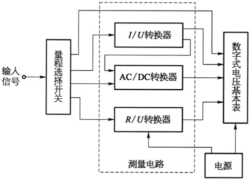 数字式多用电表和指针式多用电表的基本原理一样,都建立在电阻串并联扣欧姆定律的基础之上;在测量较大的电压时,可以通过分压电阻扩大量程。