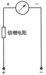 当测量直流电压时,其内部简化结构如图 8 所示。通过改变与表头串联的倍增电阻,可实现测电压量程的转换。例如,当倍增电阻的阻值为 R,多用电表可以测量的最大电压值为 Ig(R + Rg)。由此可知倍增电阻的阻值越大,电压量程越大。在读数时,可根据电流计示数等比例地获得待测电压值[电流计的示数为 I 时,待测电压为 I(Rg + R)]。