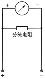 当测量直流电流时,其内部简化结构如图 9 所示。通过改变与表头并联的分流电阻,可以实现测量电流量程的转换。例如,当分流电阻的阻值为 R,多用电表可以测量的最大电流为 Ig \(\frac{{{ R_g} + R}}{R}\)。由此可知分流电阻的阻值越小,电流量程越大。在读数时,可以根据电流计示数等比例的获得待测电流[电流计示数为 I 时,待测电流值为 I \(\frac{{{R_g} + R}}{R}\)]。