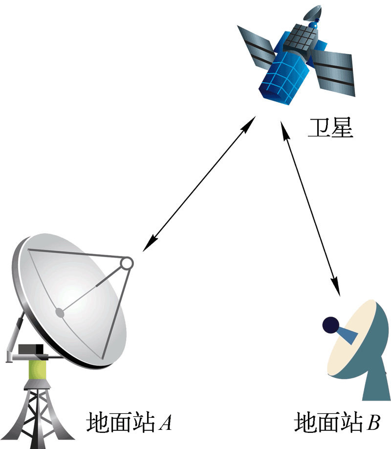 利用人造地球卫星在地面站之间进行通信的系统,称为卫星通信系统,人造卫星相当于离地面很高的中继站。卫星通信(图 11–37)可以在两个或多个地面站之间进行。卫星通信的特点是:通信范围大,只要在卫星发射的电磁波所覆盖的范围内,任何两点之间都可进行通信。