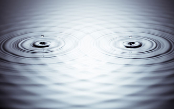生活中,经常会有两列波在同一种介质中相遇的现象。例如,两滴水同时滴入水槽形成两列彼此独立的水波,在水槽中传播并相遇,如图 3–24 所示;房间里两个人同时讲话也形成两列彼此独立的声波,在空气中传播并相遇。两列波相遇会发生什么现象?
