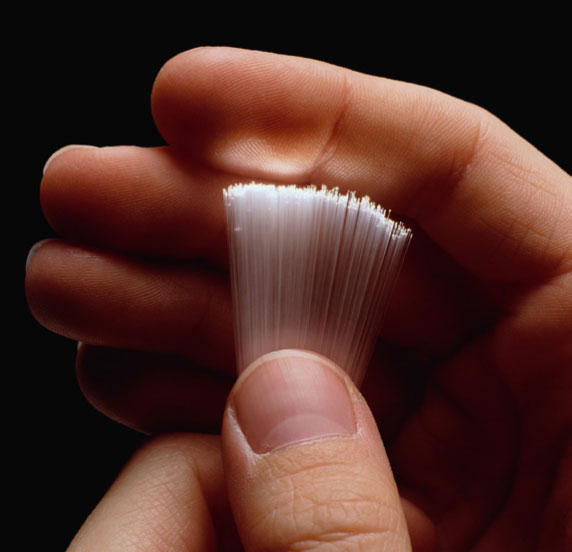 光导纤维简称“光纤”,是一种能够传导光波和各种光信号的纤维,如图 4–13 所示。21 世纪人类社会进入信息大爆炸的时代,光纤是传输信息的理想载体。