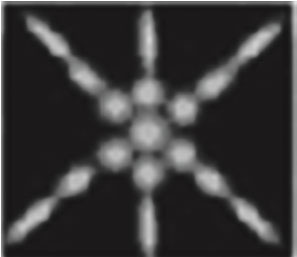 10.参考解答:由教材图 4 – 58(a)可以总结得出这样的规律:单缝有两条边,矩形孔有四条边,而圆孔可视为由 n 条边构成的,n 边形(n→∞)。由衍射图样的特征发现,在任一条边的垂直方向都会有一组衍射图样,因此单缝有两条衍射图样,矩形孔有四条衍射图样,圆孔沿各个方向均有衍射。由此可推断六边形孔的衍射图样沿六个与边垂直的方向展开,如图 4 – 58(b)所示。