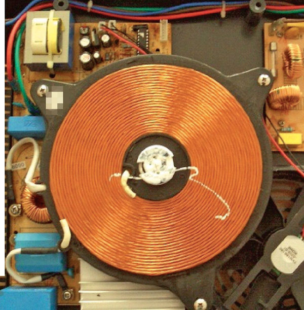 家用电磁炉需要在 20 ~ 40 kHz 的高频电压下正常工作。由于变压器不能改变交流电的频率,电磁炉工作时需要由整流电路将 50 Hz 的家用交流电压转化直流电压,然后由开关电源将直流电压转化成 20 ~ 40 kHz 的高频电压,通过控制电路和高频变压器输出合适的电压,再输入电磁炉底盘上的铜丝绕制的线圈中产生高频交变磁场。