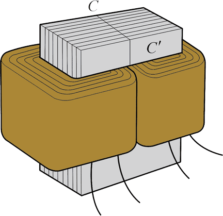 图 7–7 变压器中的硅钢片减小涡流损耗