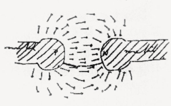 图 8–1 法拉第描绘的两个带电导体球间的电场