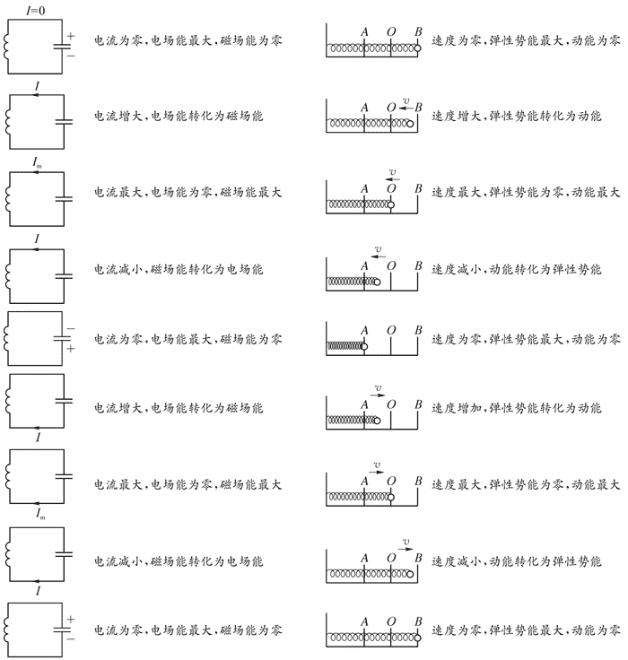 电流为零,电场能最大,磁场能为零 速度为零,弹性势能最大,动能为零