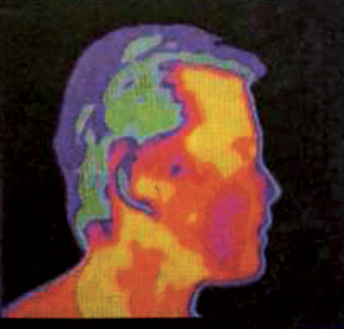 人们利用红外线显著的热效应研制了热成像技术,被广泛运用于军事侦察、气象探测等多种遥感领域,以及医疗检测(图 8–26)等方面。除此之外,红外通信因其成本低、技术成熟等优势,还常被用在短距离通信上,如遥控器等。