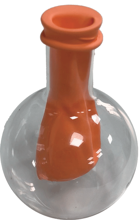 - 如图 11–16 所示,在球形瓶中放入一个气球,把气球的开口端翻在球形瓶的瓶口上,然后向气球内吹气,简述将要发生的现象及其原因。