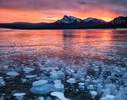 - 湖底腐烂的植物释放出沼气,当遇到严寒天气时沼气泡在水中被冰冻起来,自下而上越来越大,形成一道有趣的风景(图 11–17)。