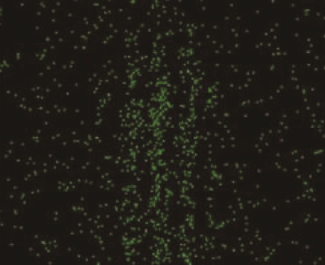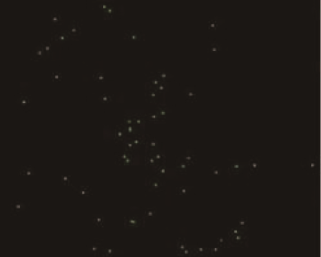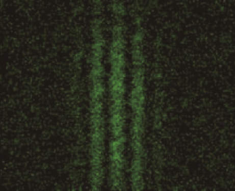 如图 14–13 所示的单光子的双缝干涉实验现象显示了光的波粒二象性。实验中,激光光源的强度被调节得很弱,以至于每次只有一个光子通过双缝装置。光子射到双缝后的荧光屏上产生的闪光光点由相机拍摄下来。