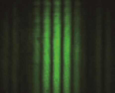 1961 年,德国科学家约恩孙(C.Jonsson)首次成功获得电子的双缝干涉图样。如图 3(a)所示,他使灯丝 F 发射的电子经过 50 kV 的电压加速后,穿过阳极上的小孔,照射到用铜箔制成的双狭缝上。双缝宽度为 a =0.5 μm,缝间距离 d 为 1 ~ 2 μm,电子束的德布罗意波长 λ = 5.48×10−3 nm。在缝后距离 0.35 m 处的荧光屏或照相底片上得到了清晰的等间距、等强度的双缝干涉图样[图 3(b)],与光的双缝干涉完全一致,明确地显示了电子具有波动的特征。