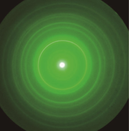 (b) 电子经多晶体衍射的图样