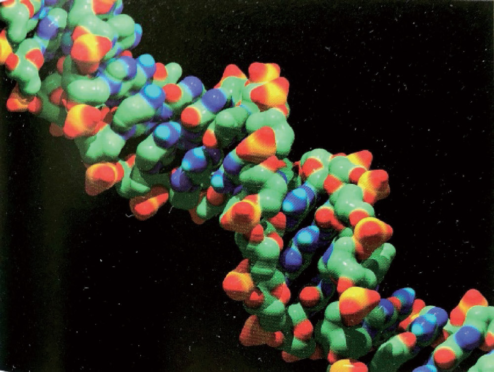 图 14–16 根据电子衍射实验推演的 DNA 大分子结构示意图