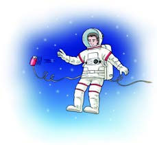 2.一个连同装备共有 100 kg 的航天员,脱离宇宙飞船后,在离飞船 45 m 的位置与飞船处于相对静止的状态(图 1.6-8)。装备中有一个高压气源,能以 50 m/s 的速度喷出气体。航天员为了能在 10 min 内返回飞船,他需要在开始返回的瞬间一次性向后喷出多少气体?