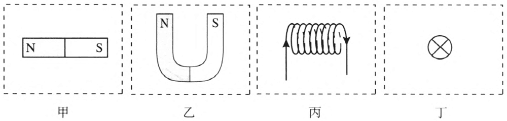 (2)如图 1–4 所示的四个图分别表示虚线框内的磁场源可能是条形磁体、蹄形磁体、通电螺线管和电流及它们的大致位置。
