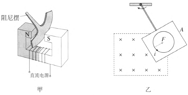 实验装置:如图 2–5 甲所示。阻尼摆是可以在两磁极间摆动的铝片(或铜片)。