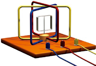 一种探测地雷的探雷器是利用涡流工作的。士兵手持一个长柄线圈在地面扫过(图 2.3–6),线圈中有变化着的