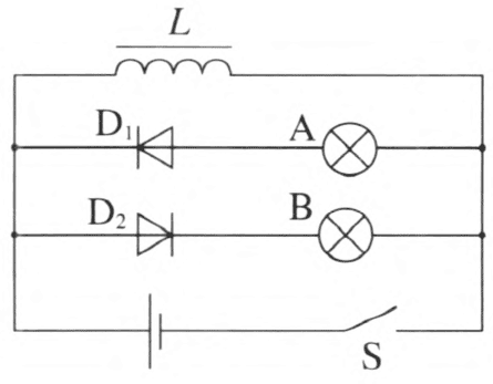 (1)当开关 S 由断开变为闭合时,A、B 两个灯泡的亮度将如何变化?请作出解释。