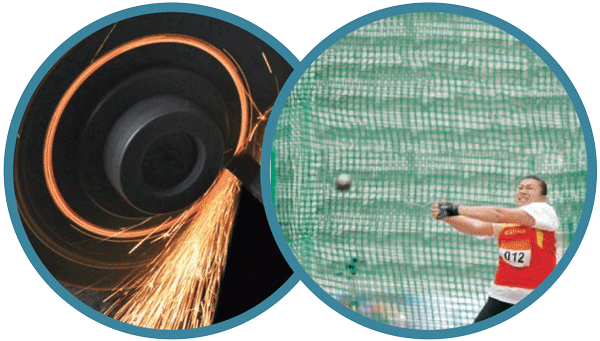 观察右边两幅图片描述的现象,你能不能说清楚:砂轮打磨下来的炽热微粒和飞出去的链球,分别沿着什么方向运动?