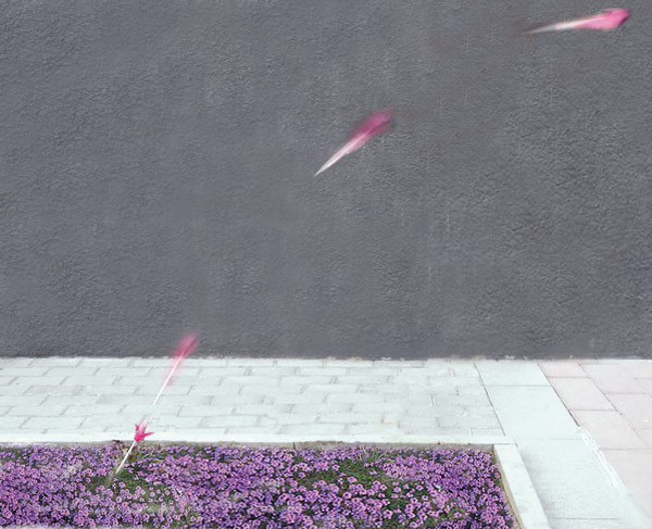 改变飞镖的投射角,观察它在飞行过程中直到插入泥土时的速度方向。