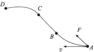 5.一个物体在光滑水平面上运动,其速度方向如图 5.1–7 中的 v 所示。从 A 点开始,它受到向前但偏右(观察者沿着物体前进的方向看,下同)的合力。到达 B 点时,这个合力的方向突然变得与前进方向相同。达到 C 点时,合力的方向又突然改为向前但偏左。物体最终到达 D 点。请你大致画出物体由 A 至 D 的运动轨迹,并标出 B 点、C 点和 D 点。