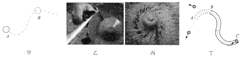 问题 2.图 5–5 乙显示了砂轮打磨金属块时,脱落“火星”的运动轨迹。“火星”在脱落前瞬间的速度方向如何?