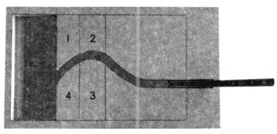 问题 5.如图 5–7 所示,在水平面上放置倾斜的轨道和几块泡沫构成的曲线轨道,其中 1、2、3、4 块可撤除,当小钢球在轨道中运动时,撤除哪几块将改变小钢球的运动轨迹?为什么?实验结论与你的分析相符吗?