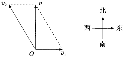 3.炮弹的实际速度方向指向北岸的目标方向,该速度 v 是船的速度 v1 与射击速度 v2 的合速度,根据平行四边形定则可知,射击的方向偏向目标的西侧。俯视图如图所示。