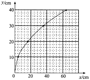 提示:根据蜡块 1 s 内的水平位移和竖直位移,在坐标纸上描点(4,10)、(16,20)、(36,30)、(64,40),用平滑曲线描绘蜡块的轨迹。