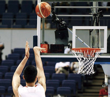 1.在篮球比赛中,投篮的投出角度太大和太小,都会影响投篮的命中率。在某次投篮表演中,运动员在空中一个漂亮的投篮,篮球以与水平面成 45°的倾角准确落入篮筐,这次跳起投篮时,投球点和篮筐正好在同一水平面上(图 5–6),设投球点到篮筐距离为 9.8 m,不考虑空气阻力。