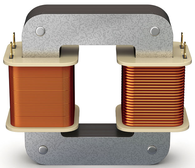 涡流也可能给人们的生产生活带来不利影响。例如,变压器、电动机和发电机的铁芯常会因涡流损失大量的电能并导致设备发热。为了减少发热,降低能耗,提高设备的工作效率,一般先把硅钢轧制成很薄的板材,板材外涂以绝缘材料,再把板材叠放在一起,形成铁芯(图 2-25)。这样,涡流被限制在薄片之内,由于回路的电阻很大,涡流大为减弱,涡流导致的发热大大降低。另外,硅钢的电阻率大,也可进一步减少涡流造成的损失。