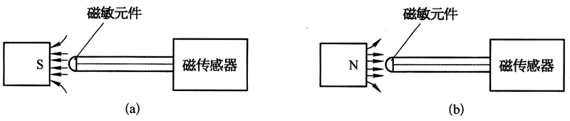 磁传感器有一根细长的探测管,传感器件位于探测管的端部,当磁场的磁感线穿过端部的测试面时,测得的磁感应强度能转化为电压信号。磁传感器显示的数值是探测器测试面中心区域附近且垂直于测试面的磁感应强度分量。当读数为正时,表示磁感应强度分量方向沿探测管向前,如图 11 – 1(a)所示;反之表示方向向后,如图 11 – 1(b)所示。该实验所用磁传感器的测量范围为 – 15 ~ + 15 mT。