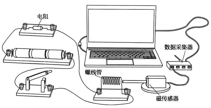 按照图 11 – 3 所示连接电路,将螺线管串接 10 Ω 电阻和开关后接入 3 节 1.5 V 干电池组成的电源。将磁传感器通过数据采集器与计算机连接。