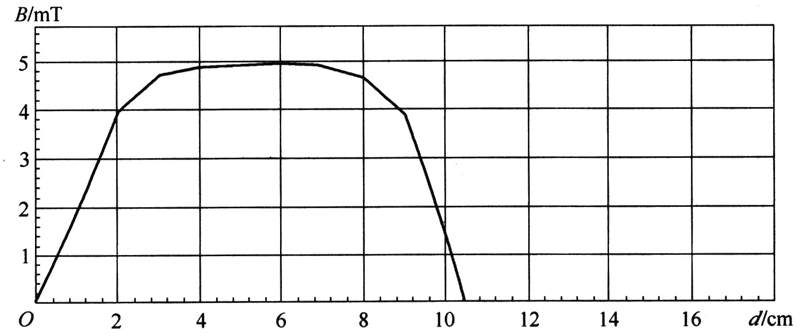 记录当前的磁感应强度值,将磁传感器探测管推入螺线管内,每次移动 0.5 cm,直到探测管前沿超出螺线管另一端口 1 cm 处,记录对应的磁感应强度值,得到多组数据。