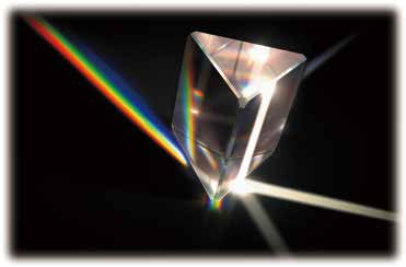 彩虹不仅仅属于大自然。只要用一块玻璃三棱镜对着一束太阳光,大自然的神奇就会重现。