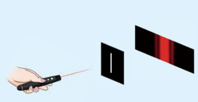 产生衍射现象时,来自小孔不同位置的光在屏上相遇叠加,有的相互加强,有的相互减弱,形成明暗相间的衍射图样。如果用单缝代替圆孔(图 5-16),当缝较宽时,光沿着直线方向通过狭缝,在屏上形成一条与单缝相似的亮条纹;单缝宽度逐渐减小时,亮条纹的宽度反而增大了,这表明光没有沿直线传播,它绕过了缝的边缘,传播到比单缝更宽的地方。