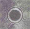 1818 年,法国科学院为鼓励对衍射问题的研究,悬赏征集这方面的论文。当时年轻的物理学家菲涅耳按照波动说深入研究了光的衍射,在论文中提出了解决衍射问题的数学方法。作为评委之一的法国科学家泊松,按照菲涅耳的理论计算了光在圆盘后的影像问题。他发现,如果该理论成立,那么在一定条件下,影的中心应该出现一个亮斑。泊松认为这是非常荒谬可笑的,并声称驳倒了光的波动说。菲涅耳等人立即对此进行实验,不久,菲涅耳和物理学家阿拉果在实验中观察到了这个亮斑(图 5-19)。这样,泊松的计算反而支持了光的波动说。后人为了纪念这个有意义的事件,把这个亮斑称为泊松亮斑。