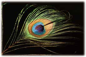 复色光经光栅衍射后会彼此分开,如白光经过光栅后能被分解并形成彩色条纹。由此,光栅作为分光器件,常被用于单色仪和光谱仪中。利用这一现象,人们通过光栅拍摄灯光时,会得到一种奇妙的效果(图 5-23)。另外,孔雀细密的羽毛就像有规律地排列在一起的反射光栅(图 5-24),使多束反射光相互干涉,也可形成闪烁绚丽的色彩。