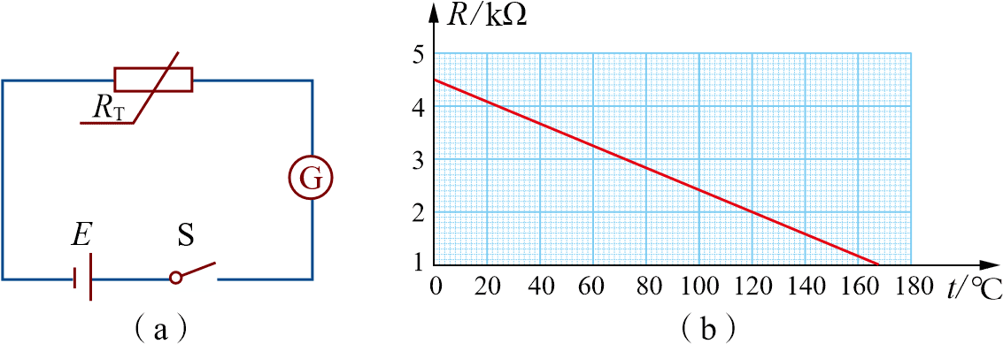 4.温度传感器广泛应用于室内空调、电冰箱等家用电器中,它是利用热敏电阻的阻值随着温度变化的特性来工作的。如图(a)所示,电源的电动势 E = 9.0 V,内阻不计;G 为灵敏电流计,内阻 Rg 保持不变;RT 为热敏电阻,其电阻阻值与温度的变化关系如图(b)所示。闭合开关 S,当 R 的温度等于 20℃ 时,电流表示数 I1 = 2 mA ;当电流表的示数 I2 = 3.6 mA 时,热敏电阻的温度是多少?