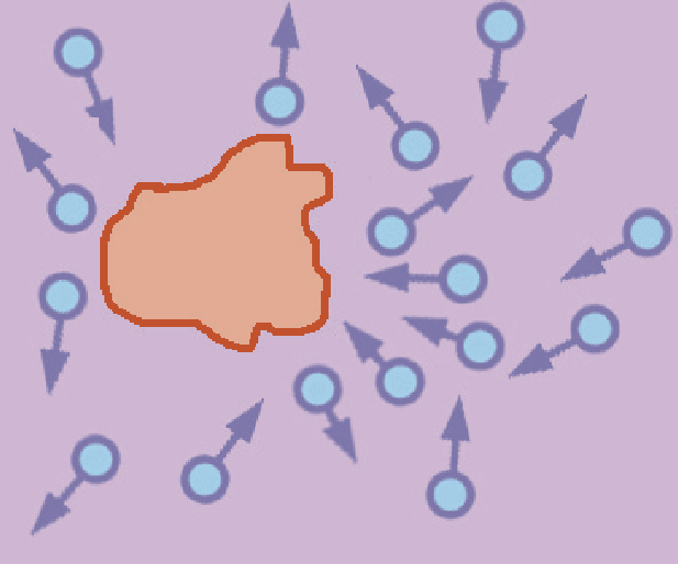 实际上,布朗运动是由微粒在液体中受到液体分子的撞击引起的。悬浮在液体中的微粒不断地受到液体分子的撞击,微粒在某一时刻所受各个方向上的撞击作用的不平衡(图 1-4),使微粒的运动状态发生变化。微粒越小,其运动状态变化就越明显。布朗运动反映了液体分子在永不停息地做无规则运动。