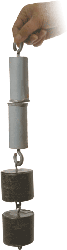 (1)把两个铅块的横截面磨平,再用力把它们压在一起。看看铅块下面挂上多少个钩码才能把它们拉开(图 1-5)。