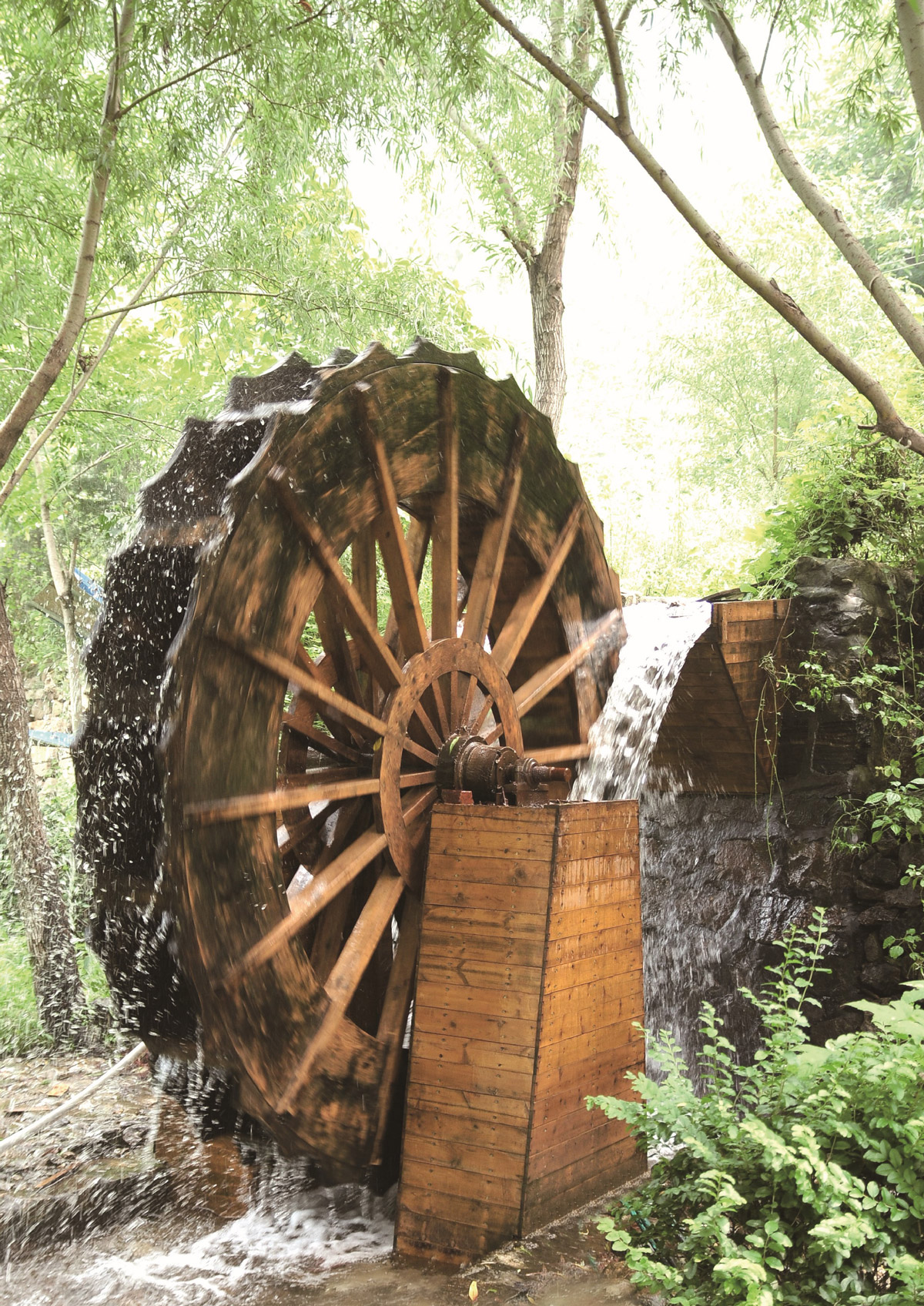 水可以自发地从高处流向低处,将势能转化为动能。水车就是利用水的动能工作的。被水冲击的水车获得动能后,可以对外做功,带动其他机械工作。在这一过程中,水的机械能最终转化为内能。