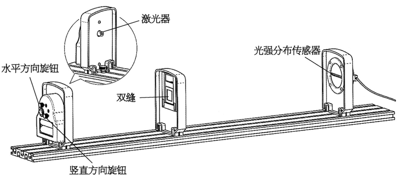 光学导轨、可调节方向的激光器、双缝、光强分布传感器。