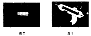 演示:没有磁场时电子束是一条直线(如图2)。如图3所示,用一个蹄形磁铁在电子束的路径上加一磁场,尝试不同方向的磁场对电子束径迹的不同影响,直至出现电子束在磁场中偏转。