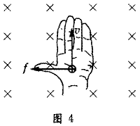 伸开左手,使大拇指和其余四指垂直且处于同一平面内,把手放入磁场中,让磁感线垂直穿过手心,若四指指向正电荷运动的方向,那么拇指所指方向就是正电荷所受洛伦兹力的方向(如图4所示)。若四指指向负电荷运动的反方向,那么拇指所指方向就是负电荷所受洛伦兹力的方向。