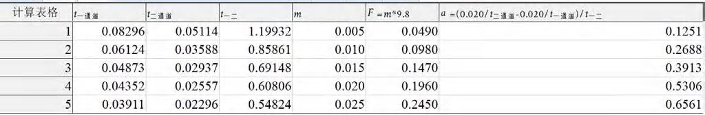 2 添加公式“F = m1*9.8”(N),得到拉力与加速度间的关系,如图 14 – 2 所示;