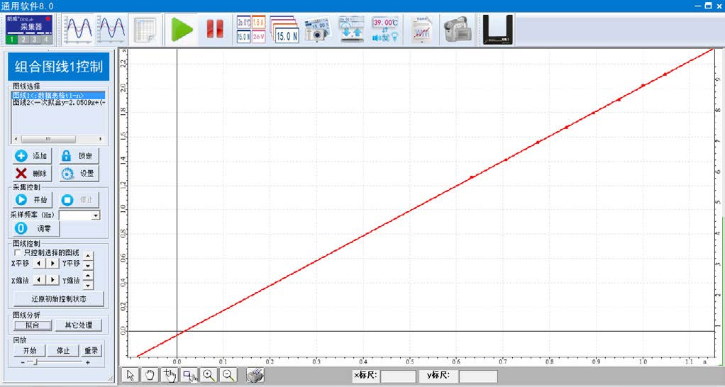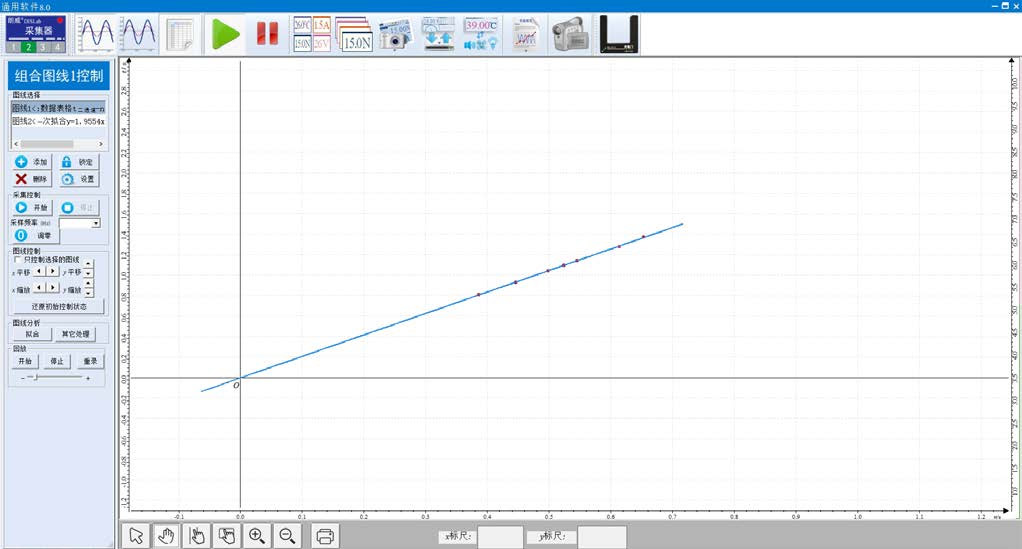 1 打开通用软件,单击“数据表格”,增加变量“d”表示摆球直径,“l”表示摆线长。添加单摆摆长公式“L = d / 2 + l”,摆长开方公式“n = l ^(1 / 2)”,(本次实验 d = 0.018 m,l = 1.2 m);